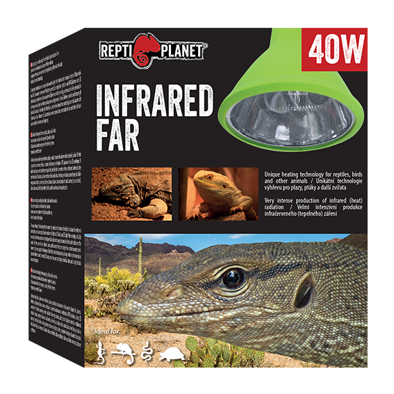 ReptiPlanet Infrared Far 2 היא נורת חימום עם פליטת קרינה אינפרה-אדומה רחוקה המיועדת ליצירת חום עדין ונעים בסביבת טרריום. הקרינה הארוכה מחממת את הגוף והמשטחים בצורה עמוקה אך בטוחה, בדומה לקרינת חום טבעית. עיצוב האור מאפשר שימוש גם בשעות הלילה מבלי להפריע למחזור היום-לילה של בעלי החיים. מתאים במיוחד לזוחלים וחיות שדורשים אזור “חום גוף” עדין ויציב לכל אורך היום.