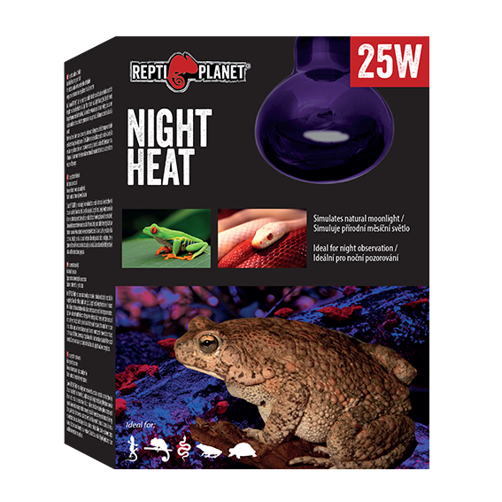 ReptiPlanet Night Heat היא נורת חימום ייעודית לשימוש בלילה, המעניקה חום עדין ואחיד מבלי להפריע למחזור אור-חושך של הזוחלים. נורה זו מפיקה חום בטמפרטורה שמרגישה טבעית ומתאימה במיוחד לזוחלים ליליים או מינים הרגישים לאור חזק. מחממת בעדינות את סביבת הטרריום כך שהטמפרטורה הלילית נשמרת יציבה ונוחה. פתרון אידיאלי לשימור חום לילה בריא ובטוח לשימוש יומיומי.