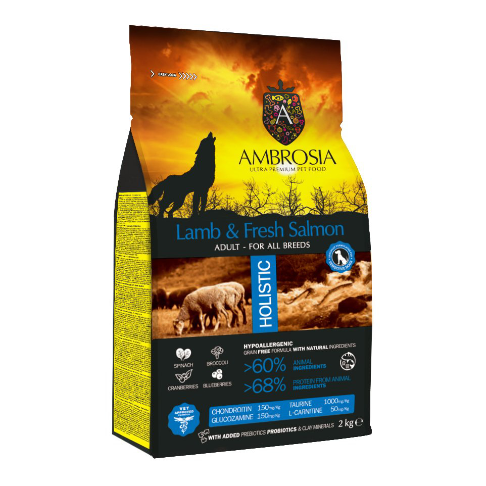 אמברוסיה מזון הוליסטי בטעם סלמון וכבש 12 ק"ג Ambrosia Lamb and Fresh Salmon