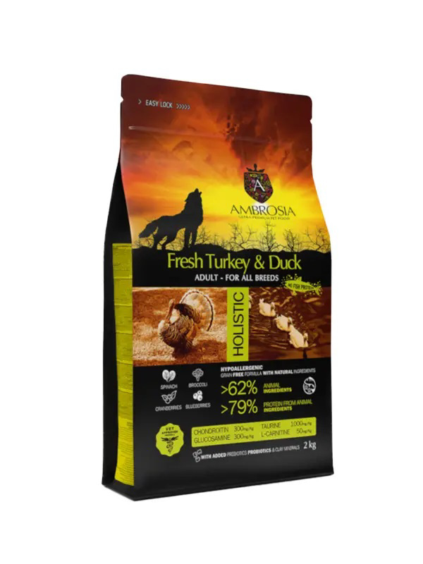 אמברוסיה מזון הוליסטי בטעם הודו וברווז 12 ק"ג Ambrosia Fresh Turkey and Duck