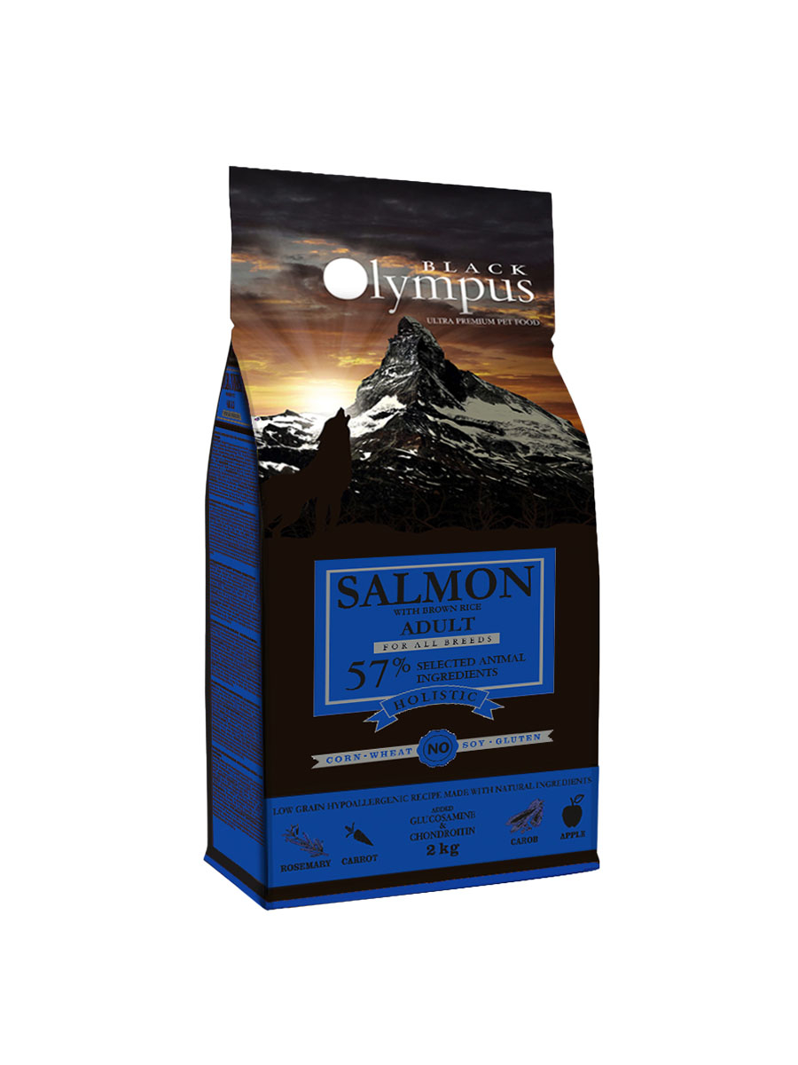 Black Olympus Salmon with Brown Rice 12 kg מזון הוליסטי לכלבים בוגרים מכל הגזעים.