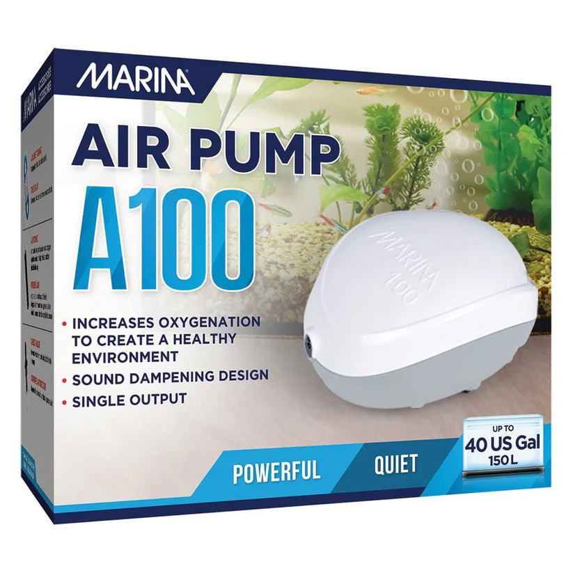 MARINA A100 היא משאבת אוויר איכותית ושקטה יחסית, שמתאימה לאקווריומים עד 150 ליטר ולמגדלים שמחפשים אוורור יציב ואמין לשימוש יום יומי. היא מסייעת לשפר חמצון במים, ליצור תנועת מים עדינה ולהפעיל אבני אוויר, קישוטים ומסננים מבוססי אוויר באקווריום.