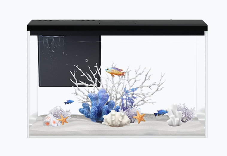 אקווריום בעל פילטר התלוי בעזרת מגנט וניתן לניתוק בקלות לניקיון שוטף.