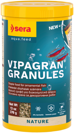 SERA VIPAGRAN 1000ml – ויפגרן גרגירים הוא אחד מסוגי המזון הפופולריים והאמינים ביותר לדגי להקות טרופיים. הגרגירים הרכים שוקעים באיטיות, מה שמאפשר לכל הדגים, גם האיטיים  להגיע למזון בקצב שלהם.